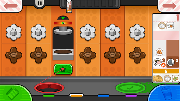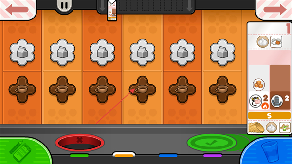 2、點擊下方咖啡杯按鈕選擇咖啡種類,根據(jù)顧客點單要求進(jìn)行選擇。
