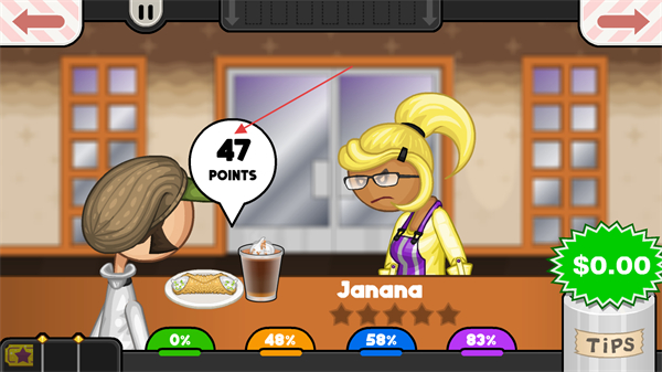 4、完成餐品咖啡后,顧客會根據(jù)制作的完成度和餐品口感做出評分,低于50分將沒有金幣獎勵。