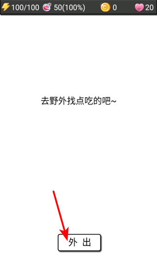 2、點(diǎn)擊外出按鈕,前往野外尋找食物,這是獲取生存資源的基礎(chǔ)操作,通過此操作開啟野外探索進(jìn)程。