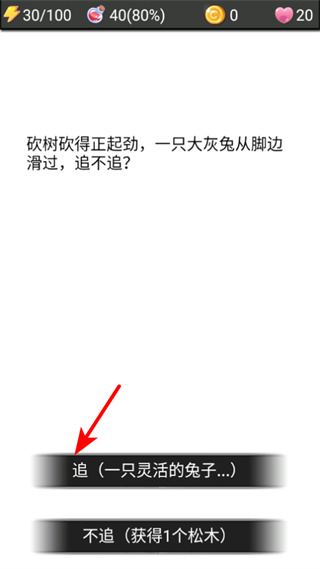 4、在野外遇到如大灰兔這類事件時(shí),可選擇追,參與事件可獲取特殊獎(jiǎng)勵(lì)或解鎖新內(nèi)容,豐富游戲體驗(yàn)。