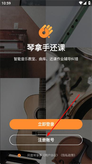 1、進入琴拿手點擊注冊賬號,進入短信驗證碼登錄頁面。