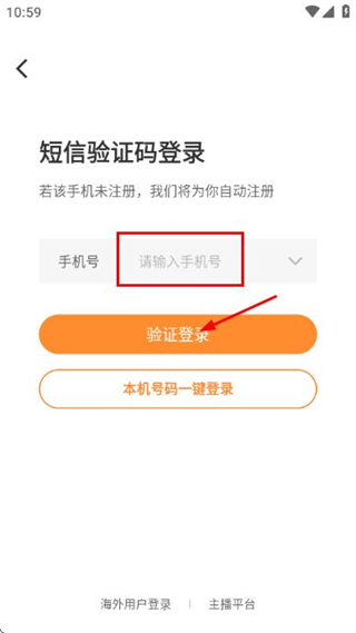 2、在短信驗證碼登錄頁面填寫手機號后,點擊驗證登錄按鈕。