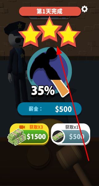 3、通關(guān)后獲取星級(jí)獎(jiǎng)勵(lì),完成審判獲得星級(jí)和薪金獎(jiǎng)勵(lì),用于提升法庭等級(jí)。
