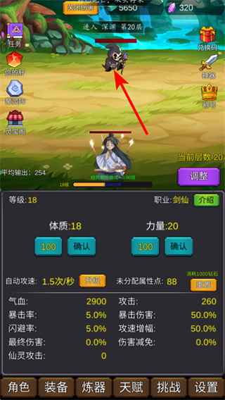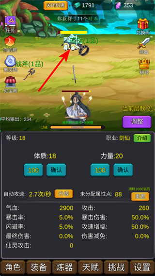 包含裝備、煉器、天賦、挑戰(zhàn)等多個(gè)系統(tǒng),可通過(guò)這些系統(tǒng)強(qiáng)化氣血、攻擊、暴擊率角色屬性,搭配作弊菜單資源優(yōu)勢(shì),提升修仙實(shí)力。