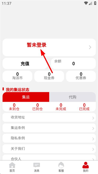 1、在淘派國際首頁,點擊底部導航欄的我的選項,可進入個人中心頁面。