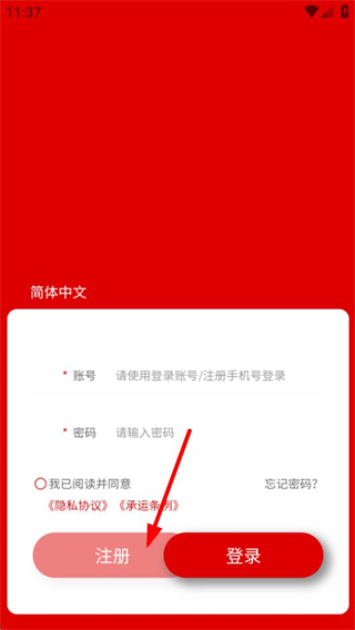 3、在登錄界面,點擊注冊按鈕,可進入賬號注冊頁面。