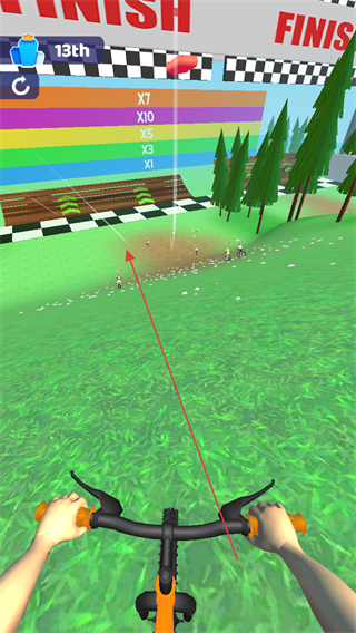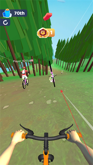 2、在森林賽道中,躲避其他騎手和障礙物,保持行駛速度,提升排名。