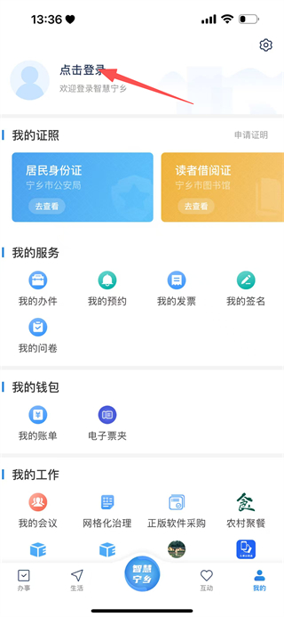 2、在個人中心頁面,點擊點擊登錄,進入登錄選擇界面。