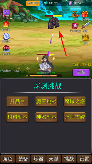 3、參與深淵挑戰(zhàn),選擇合適的挑戰(zhàn)副本如魔王挑戰(zhàn)等,擊敗深淵怪物可獲取修仙材料和道具,助力提升修仙境界。
