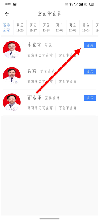 4、在選擇頁面,選擇醫(yī)生后,點(diǎn)擊預(yù)約,完成掛號(hào)操作。