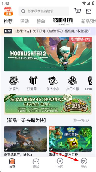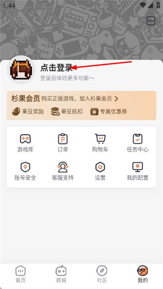 1、在杉果首頁點擊底部我的,進入我的頁面。
