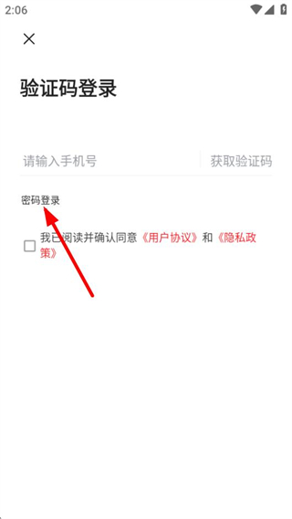3、在驗(yàn)證碼登錄界面,點(diǎn)擊密碼登錄選項(xiàng),可切換至密碼登錄頁(yè)面。