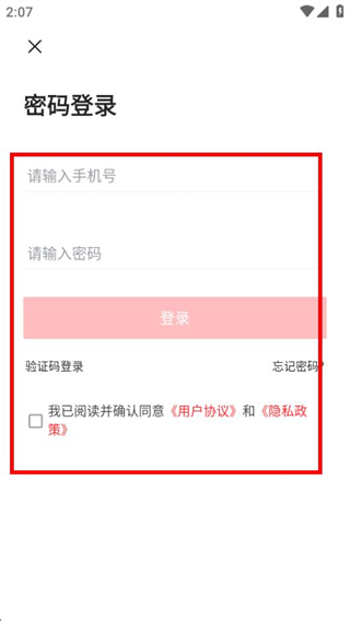 4、在密碼登錄頁(yè)面,輸入信息并勾選協(xié)議后,點(diǎn)擊登錄按鈕即可完成登錄。