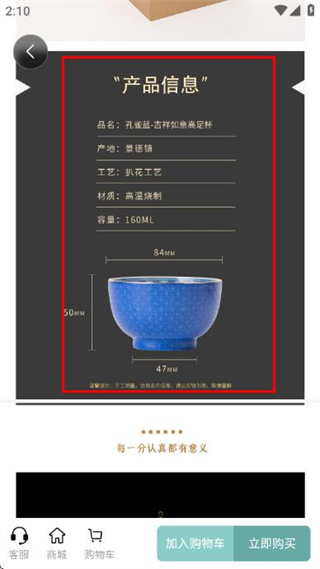 3、在商品詳情頁面下拉即可查看產(chǎn)品信息板塊,了解該茶具的品名、產(chǎn)地、工藝等詳細(xì)內(nèi)容。