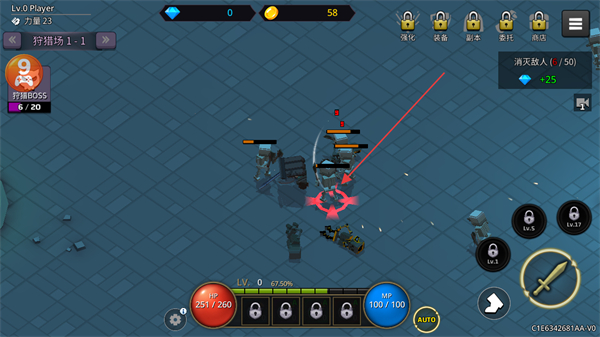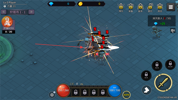 1、在狩獵場(chǎng)1-1中,操控角色攻擊敵人,通過不斷擊殺敵人積累金幣和經(jīng)驗(yàn)。