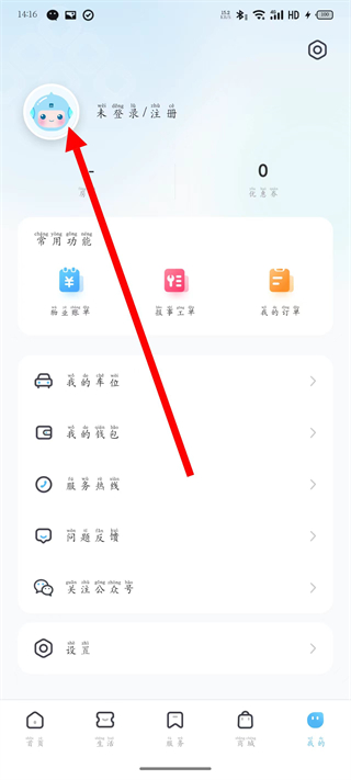 2、在個(gè)人頁(yè)面,點(diǎn)擊未登錄注冊(cè),進(jìn)入注冊(cè)登錄頁(yè)面。