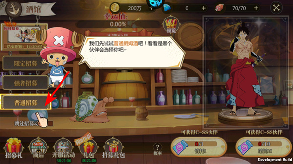 3、進(jìn)行普通招募時,點(diǎn)擊按鈕,可免費(fèi)招募伙伴,利用免費(fèi)招募機(jī)會能節(jié)省資源,持續(xù)擴(kuò)充船員陣容。