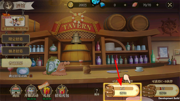 1、進(jìn)入游戲后,點(diǎn)擊酒館圖標(biāo),可進(jìn)入招募伙伴界面,這里能招募多樣伙伴,及時進(jìn)入招募心儀伙伴。