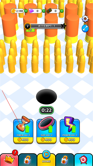 1、點(diǎn)擊主頁下方的黑洞屬性,花費(fèi)金幣進(jìn)行升級(jí),提高黑洞的移動(dòng)速度等屬性。