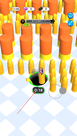2、在倒計(jì)時(shí)結(jié)束前,控制黑洞移動(dòng)吞噬盡可能多的子彈彈藥。