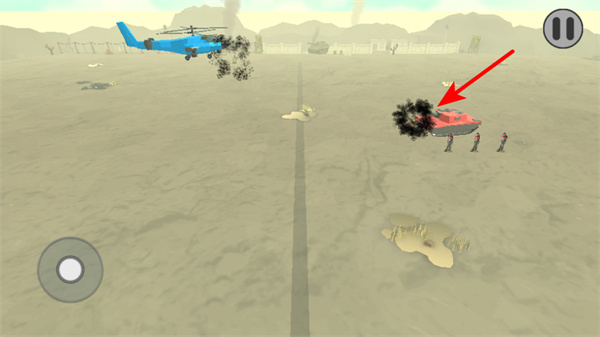 4、面對(duì)敵方坦克單位時(shí),直升機(jī)可發(fā)揮空中優(yōu)勢(shì)對(duì)其發(fā)起攻擊,利用火力壓制消滅敵方坦克,保障己方地面部隊(duì)的推進(jìn)。