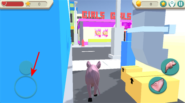 1、點擊左側(cè)移動按鍵,可操控小豬在場景中移動,這是探索地圖和推進游戲的基礎(chǔ)操作。
