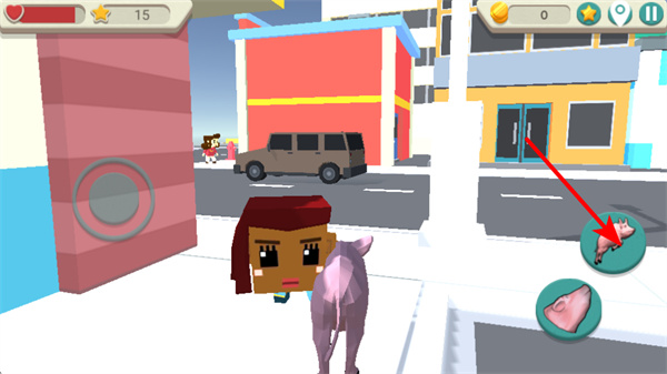 2、點擊右側(cè)豬臉圖標,可讓小豬使用攻擊技能,攻擊NPC能獲取星星獎勵,是積累資源重要方式。