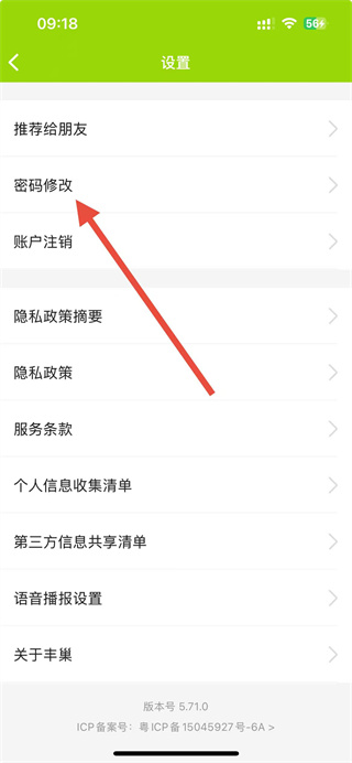 3、在設(shè)置頁(yè)面中,選擇密碼修改選項(xiàng),進(jìn)入修改密碼頁(yè)面。