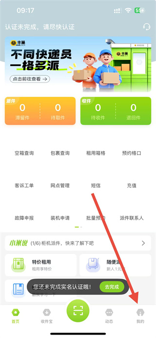 1、打開(kāi)豐巢管家app,點(diǎn)擊右下角我的進(jìn)入個(gè)人頁(yè)面。