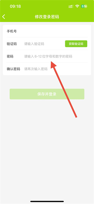 4、在頁(yè)面輸入手機(jī)號(hào)、驗(yàn)證碼,設(shè)置新密碼,點(diǎn)擊保存并登錄完成密碼修改。