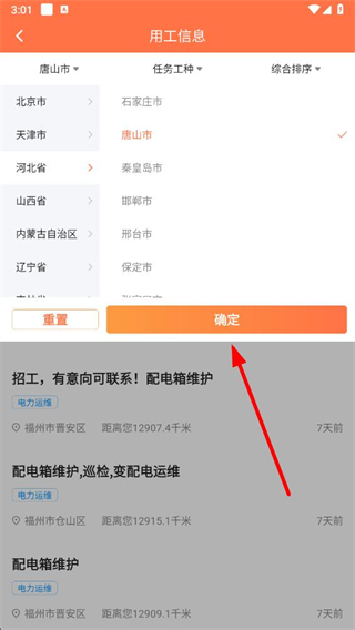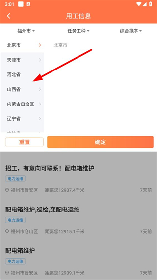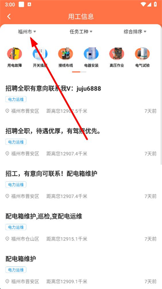 2、進入用工信息頁面后,點擊左上角城市選擇區(qū)域。