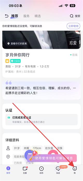 1、打開珍愛網(wǎng)App,點擊底部導航欄中的我進入個人頁面。