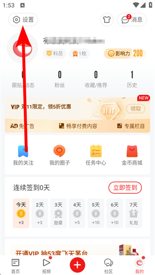 2、在個(gè)人的頁(yè)面中,點(diǎn)擊左上角的設(shè)置圖標(biāo),進(jìn)入設(shè)置頁(yè)面。
