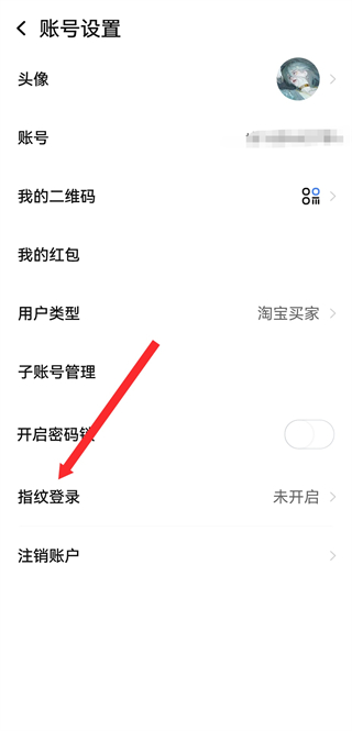 3、在賬號(hào)設(shè)置頁面,點(diǎn)擊指紋登錄選項(xiàng),進(jìn)入指紋登錄設(shè)置界面。