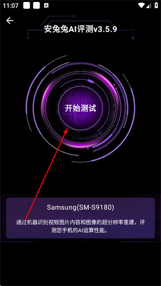 2、進入評測界面后,點擊“開始測試”,即可啟動手機AI性能測試。