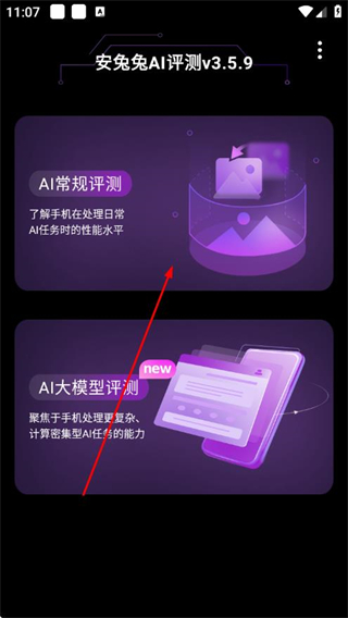 1、打開安兔兔AI評測APP,可選擇AI常規(guī)評測,了解手機處理日常AI任務的性能水平。