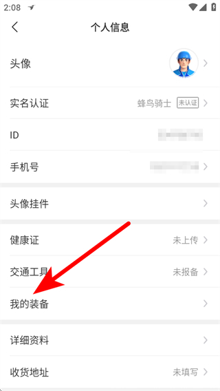 3、在個(gè)人信息頁(yè)面,找到并點(diǎn)擊我的裝備選項(xiàng),進(jìn)入我的裝備頁(yè)面。