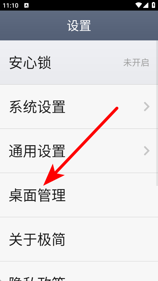 2、在設(shè)置頁(yè)面中,點(diǎn)擊桌面管理選項(xiàng),進(jìn)入相關(guān)界面。
