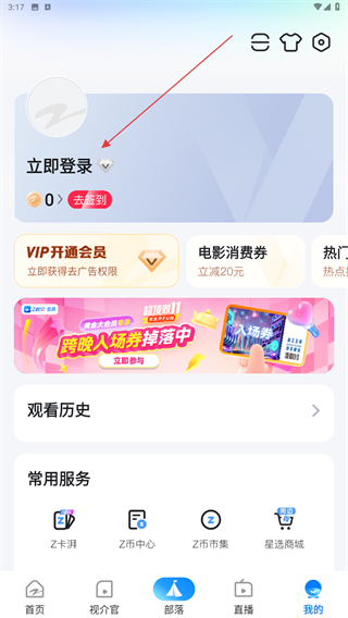 2、進入我的頁面內(nèi),點擊上方立即登錄的按鈕。