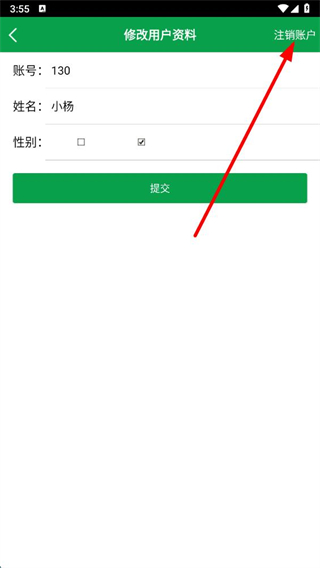 3、進(jìn)入修改用戶資料頁面后,點擊右上角注銷賬戶選項。