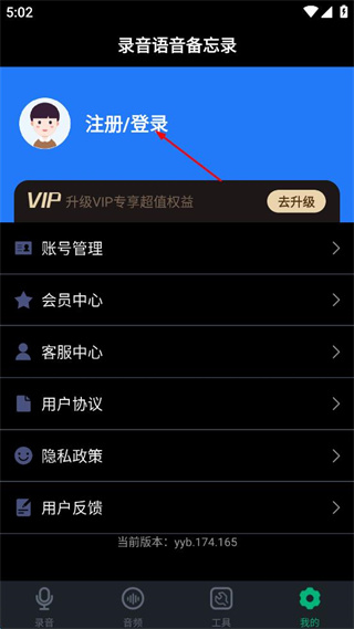 1、打開錄音語音備忘錄APP,點擊底部我的選項進入個人頁面。