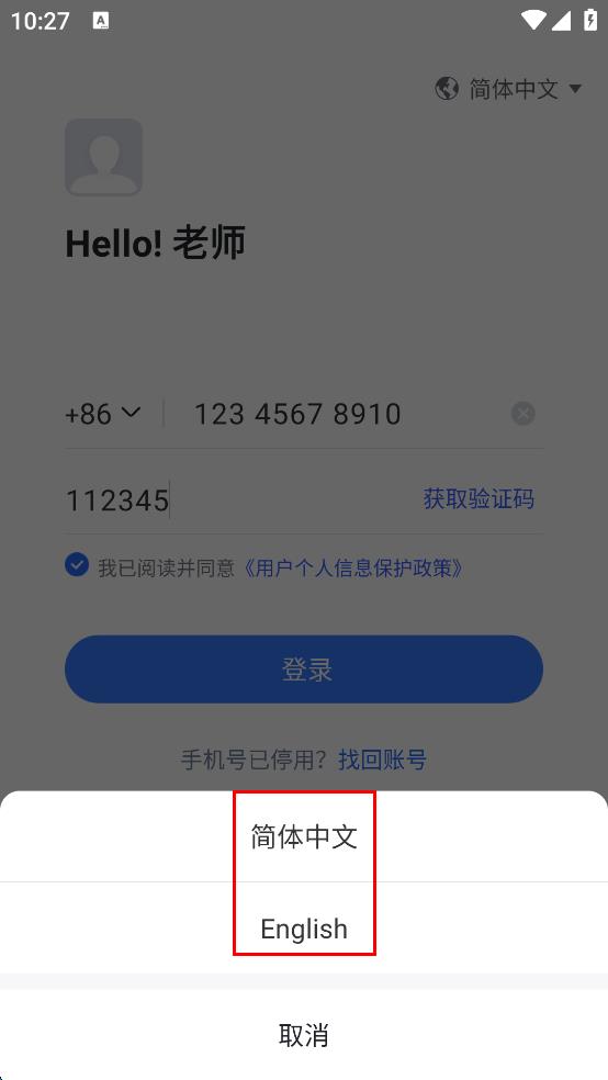 4、若需切換語言,點(diǎn)擊頁面右上角語言選項(xiàng),在彈出的選擇框中選擇所需語言。