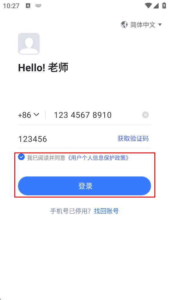 3、勾選我已閱讀并同意用戶個人信息保護(hù)政策,點(diǎn)擊登錄按鈕。