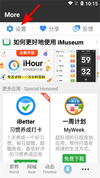 1、在imuseum應(yīng)用界面,點擊設(shè)置選項,進(jìn)入設(shè)置頁面。