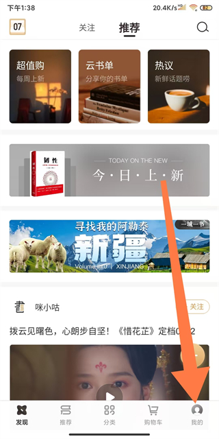 1、在咪咕云書店首頁,點擊右下角我的選項,進入個人界面。