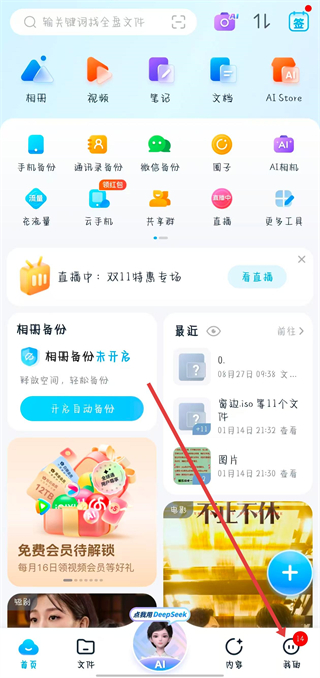 1、打開中國移動云盤,點擊右下角我的。