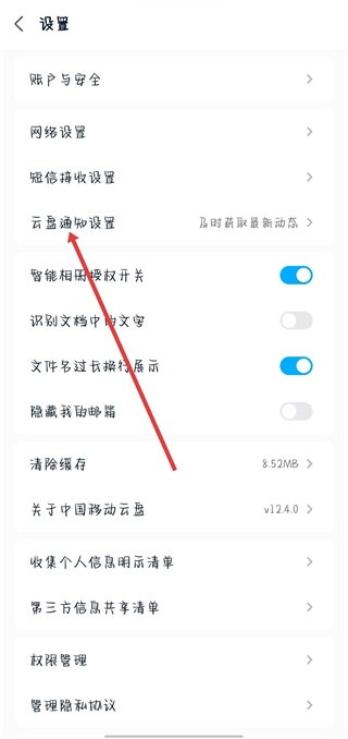 3、在設置頁面,點擊云盤通知設置選項。