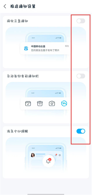 4、在推送通知設置頁面,可根據(jù)需求開啟功能。