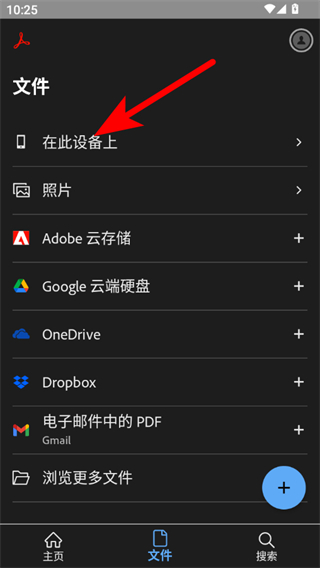 2、在文件頁面,點(diǎn)擊在此設(shè)備上選項(xiàng),進(jìn)入設(shè)備文件列表。