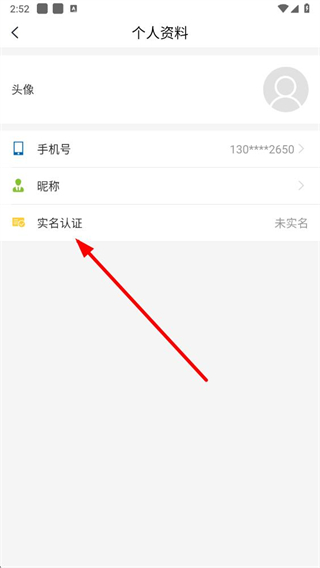 2、在個(gè)人資料頁面中,點(diǎn)擊實(shí)名認(rèn)證選項(xiàng),進(jìn)入認(rèn)證流程。